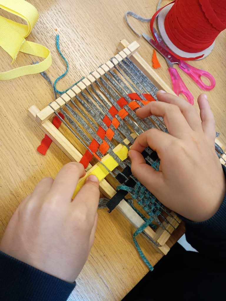 Il 23 febbraio 2026 la classe 1A della scuola Papini è andata a visitare un laboratorio di tessitura nel complesso degli Artigianelli di via de’ Serragli. Prima di iniziare l’attività abbiamo fatto merenda, poi siamo entrati in una stanza accogliente, piena di gomitoli colorati, fili di lana e strumenti di lavoro. Lì ad aspettarci c’era una tessitrice, una signora molto gentile, che ci ha raccontato che a volte lavora anche per stilisti molto famosi. Dopo esserci seduti, davanti a ognuno di noi c’erano un telaio (una cornice quadrata) e altri due strumenti in legno: la navetta, fondamentale per intrecciare i fili, e un pettine speciale per sistemare la lana e renderla più ordinata. Poi ci ha spiegato con pazienza tutti i passaggi per creare il nostro piccolo prodotto. Per prima cosa abbiamo montato il telaio, fissando i fili in verticale ai dentini della struttura, così da formare la base del lavoro. Con il pettine potevamo allinearli meglio, facendo attenzione che fossero ben tesi. Poi è arrivato il momento più impegnativo ma anche il più interessante: tessere. Abbiamo avvolto il filo intorno alla navetta e abbiamo iniziato a farla passare sopra e sotto i fili verticali, alternando ogni volta il movimento. All’inizio sembrava complicato e serviva molta concentrazione per non sbagliare, ma piano piano abbiamo preso sicurezza. Ognuno di noi ha potuto scegliere liberamente cosa realizzare: colori, forme e perfino piccoli paesaggi. Non abbiamo fatto solo semplici righe, ma qualcuno ha creato effetti particolari o ha aggiunto pezzi di stoffa ritagliati da vecchi vestiti, come jeans o magliette, per ottenere parti in rilievo. È stato sorprendente vedere come da semplici fili potesse nascere qualcosa di personale e creativo. Quando abbiamo finito, abbiamo tolto i lavori dal telaio facendo dei nodini per non farli rovinare. La prof li ha raccolti tutti e poi siamo tornati a scuola.